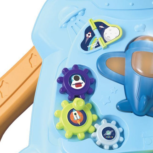 Refurbished- Goyal's Multi-Functional Sit-To-Stand Baby Learning Space Activity Walker With Music,Lights & Toys Like Detachable Aeroplane,Turning Gears,Shapes,Balls,Adjustable Speed Of Wheels