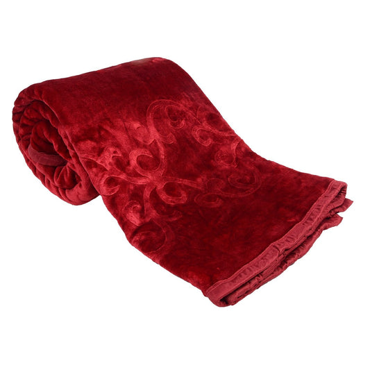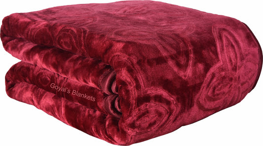 Goyal's Polyester Embossed Floral Printed 500TC Double Bed Mink Blanket 87 X 85 Inch - Maroon, (1.9 Kg)