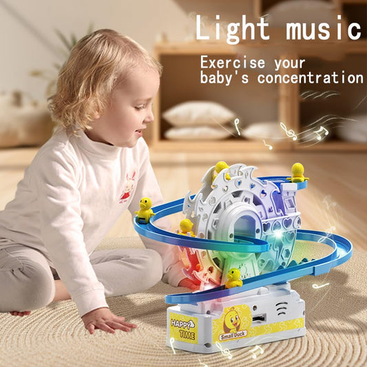 Goyal's Duck Roller Coaster Toy for Kids – Climbing Track with 3 Cute Ducks, Rotating Gear Lift, Lights & Music - Happy Time Racing Toy for Toddlers & Kids