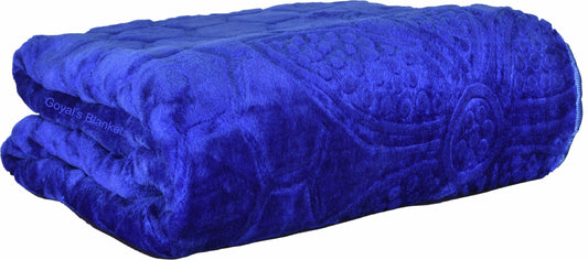Goyal's Polyester Embossed Floral Printed 500TC Double Bed Mink Blanket 87 X 85 Inch - Blue, reversible