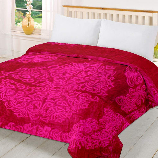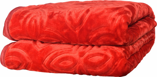 Goyal's Polyester Embossed Floral Printed 500TC Double Bed Mink Blanket 87 X 85 Inch - Red, reversible