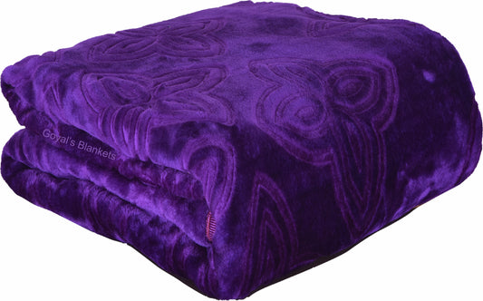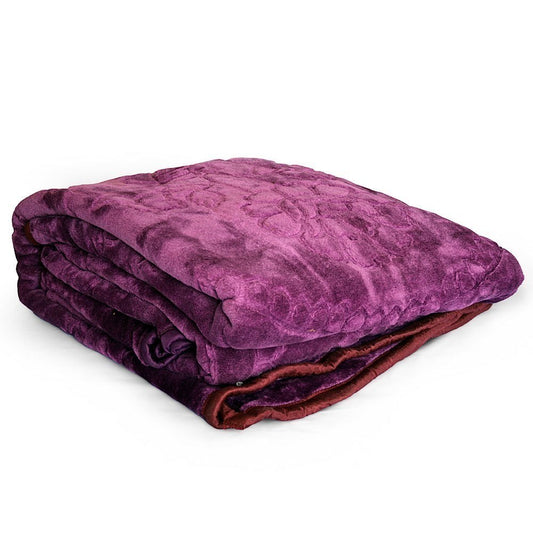 Goyal's Polyester Embossed Floral Printed 500TC Double Bed Mink Blanket 87 X 85 Inch Set of 2 - Purple and Maroon (1.9Kg)