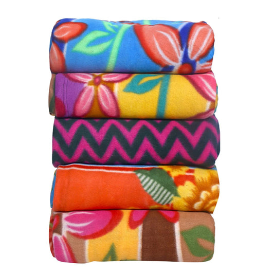 Goyal's Printed Fleece Single Bed All Season Blanket / Comforter / Dohar 250TC - Pack of 5 (58x88 Inch, Assorted)