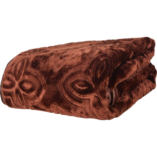 Goyal's Polyester Embossed Floral Printed 500TC Double Bed Mink Blanket 87 X 85 Inch Set of 2 - Brown and Maroon