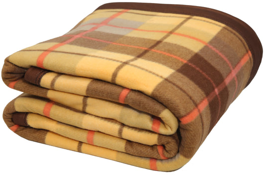 Goyal's Checker All Season Polar Fleece Blanket, Double Bed 90x90 Inches - Golden Brown (1.8Kg)