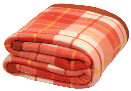 Goyal's Checker Polar Fleece All Season Blanket Double Bed With Satan Border, 90x90 Inches - Rust Orange (1.8Kg)