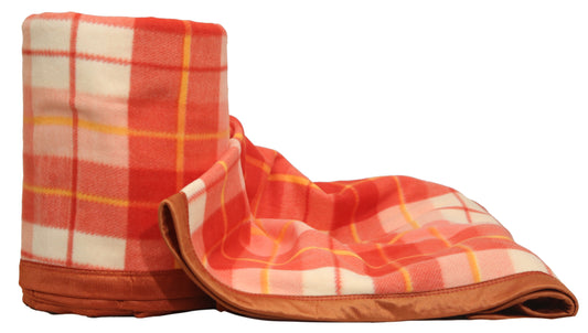 Goyal's Checker Polar Fleece All Season Blanket Single Bed With Satan Border, 60x90 Inches - Rust Orange (1.2Kg)