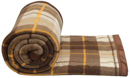 Goyal's Checker All Season Polar Fleece Blanket, Single 60x90 Inches - Golden Brown (1.2Kg)