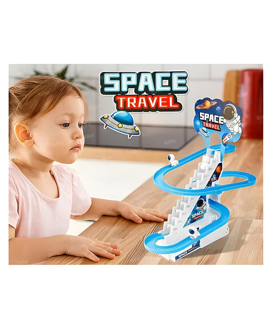 Goyal's Astronaut Space Slide Track Racing Toys for Kids - Small Space Cartoon Stair Climbing Toys for Kids, Escalator Toy with Lights and Music - 3 Space Cartoon Toy Included