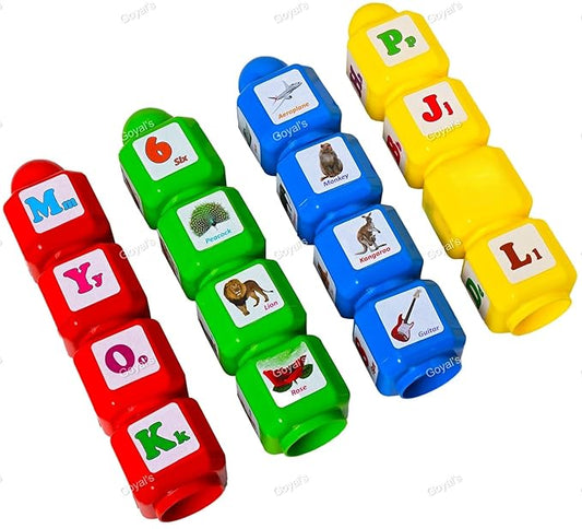 Goyal's Plastic Box Shape Puzzle Blocks for Kids, Puzzle for Children Educational & Learning Toy, Counting Numbers, Animal, Alphabet, Cartoons Etc. Printed on Puzzles (16 Blocks) Multicolor