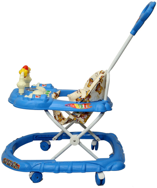 Goyal's Cartoon Baby Adjustable Walker - Music & Rattles with Parental Handle (Blue)