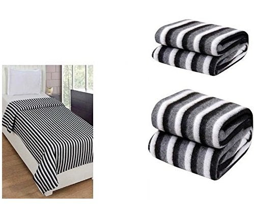Goyal's Polar Fleece Single Bed Stripes Design AC Blanket Pack of 4 - (Black & White)