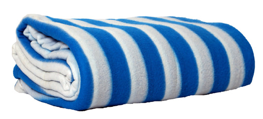 Goyal's Polar Fleece Single Bed Stripes Design AC Blanket - (Blue & White)
