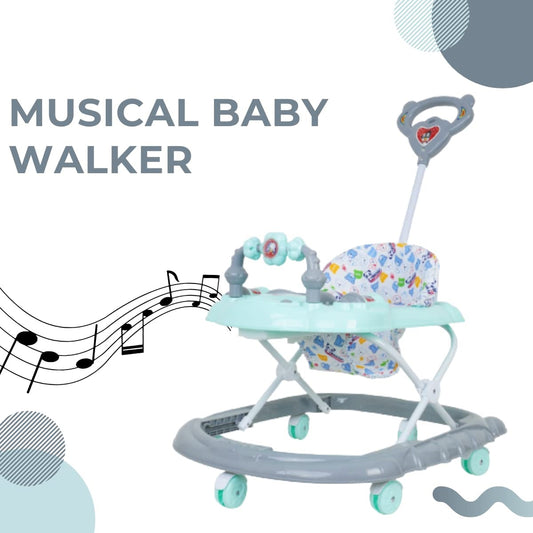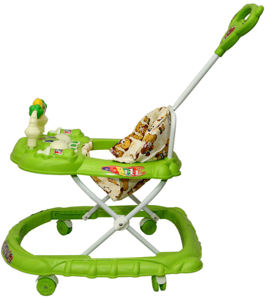 Goyal's Cartoon Baby Adjustable Walker - Music & Rattles with Parental Handle (Green)