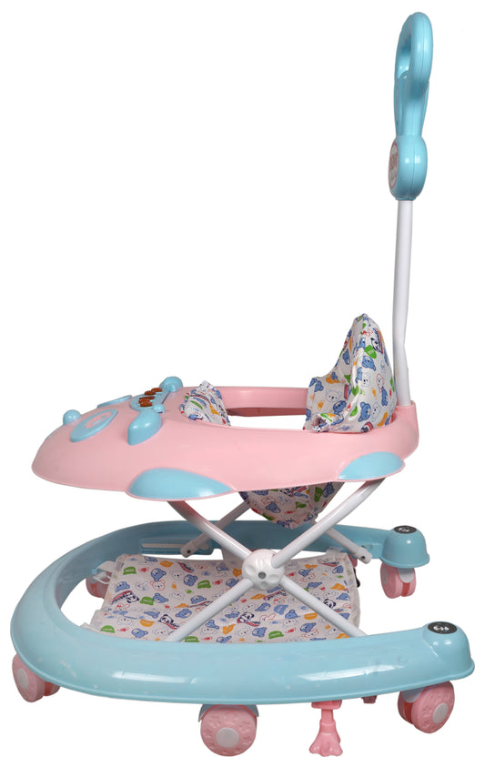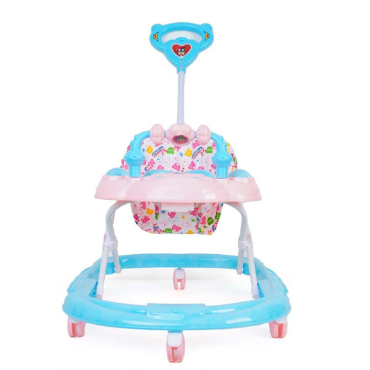 Goyal's Cartoon Baby Adjustable Walker - Music & Rattles with Parental Handle (Blue & Pink)