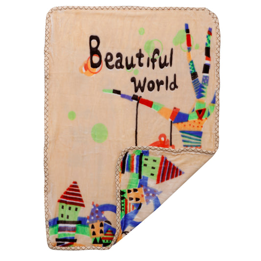Goyal's Newborn Baby's Ultrasoft All Season Double Layer Cloudy Multi Design Mink Blanket (80 x 100 cm), for 0-2 Years Baby (Beautiful World Beige)