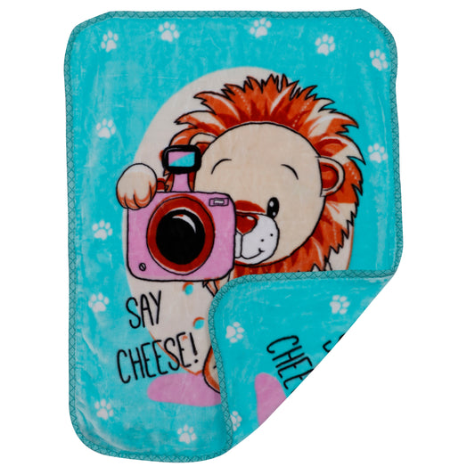 Goyal's Newborn Baby's Ultrasoft All Season Double Layer Cloudy Multi Design Mink Blanket (80 x 100 cm), for 0-2 Years Baby (Cheese Sea Green)