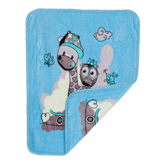 Goyal's Newborn Baby's Ultrasoft All Season Double Layer Cloudy Multi Design Mink Blanket (80 x 100 cm), for 0-2 Years Baby (Giraffe Blue)