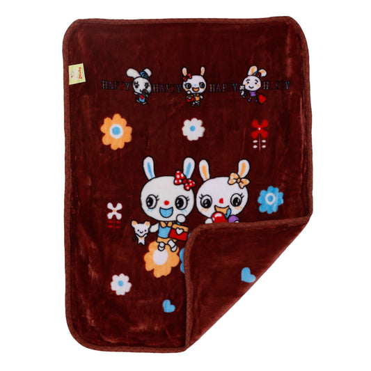 Goyal's Newborn Baby's Ultrasoft All Season Double Layer Cloudy Multi Design Mink Blanket (80 x 100 cm), for 0-2 Years Baby (Happy Brown)