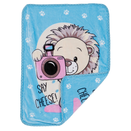 Goyal's Newborn Baby's Ultrasoft All Season Double Layer Cloudy Multi Design Mink Blanket (80 x 100 cm), for 0-2 Years Baby (Cheese Blue)