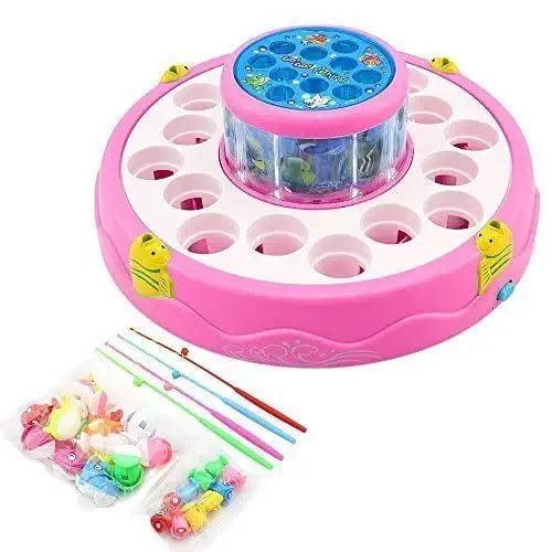 Goyal's Fishing Fish-Catching Game with 26 Piece Fishes, 2 Rotary Ponds and 4 Pods with Music and Light Function (Pink)