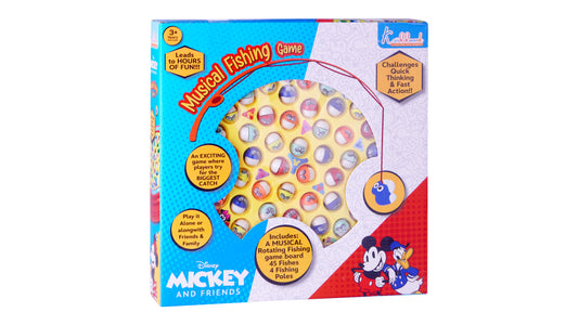 Kriiddaank Frozen Kids Musical Fishing Game Fish Catching Board Game Toy 45 Fishes with Big Round Pond & 4 Fish Catching Sticks for Kids (Mickey)