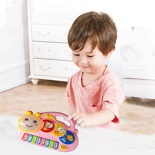 Goyal's Happy Caterpillar Piano Musical Toys for Babies and Kids with 8 Keys, Drum Pads and Music Switch Button(Multicolor)