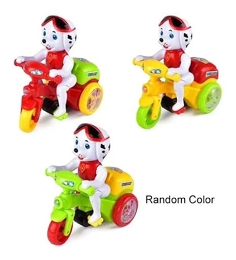 Goyal's Dancing Puppy Motorcycle Toy with Flashing Lights Music Sound Automatic Riding 360° Rotation Entertainment for Kids Both Boys and Girls, Assorted Multicolor