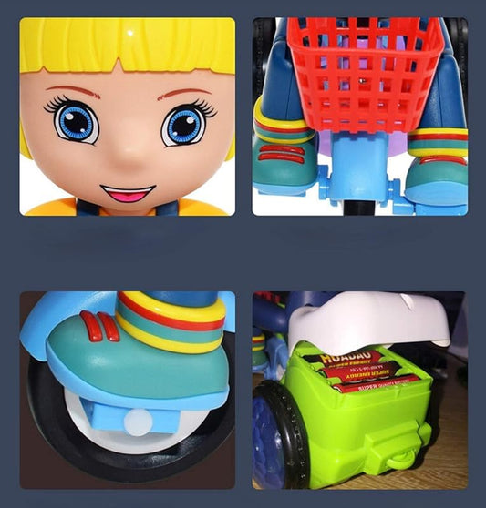 Goyal's Bump & Go Girl Toy with Flashing Lights Music Sound Automatic Riding 360° Rotation Entertainment for Kids Both Boys and Girls, Assorted Multicolor (Stunt Bicycle Girl)