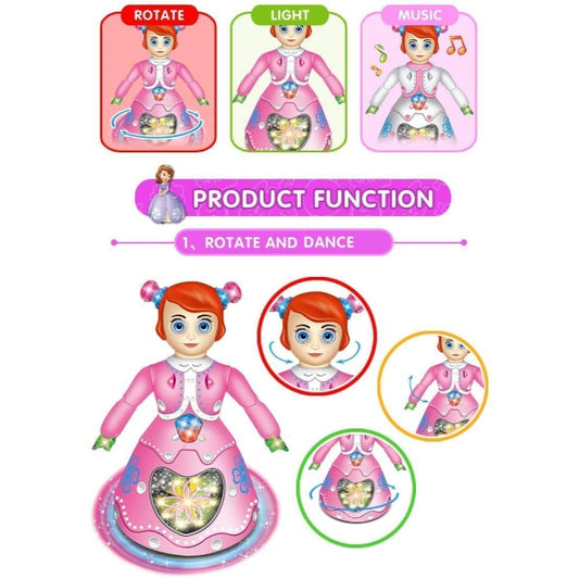 Goyal's Princess Dora Dancing Doll 360° Rotating with Music and 3D Flashing Lights (Pink)