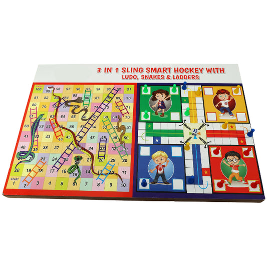 Goyal's Multi Type 3 in 1 String Hockey with Ludo and Snakes and Ladder, Fast Sling Puck Game Board String Hockey Toy | Party Game for Adult Parent Kids Children Family (Ludo Hockey)