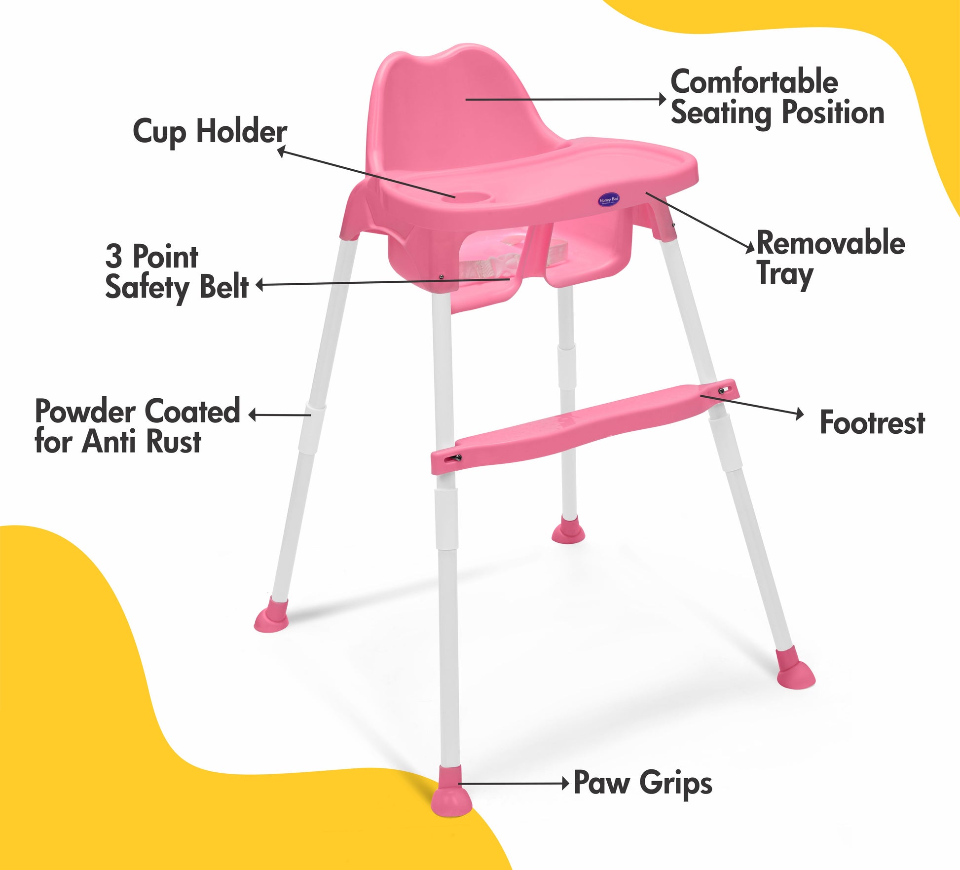 Goyal's 3 in 1 - Easy to Clean Bobo Pink Baby Dining Chair with Footrest and Tray, Upto 20 kgs