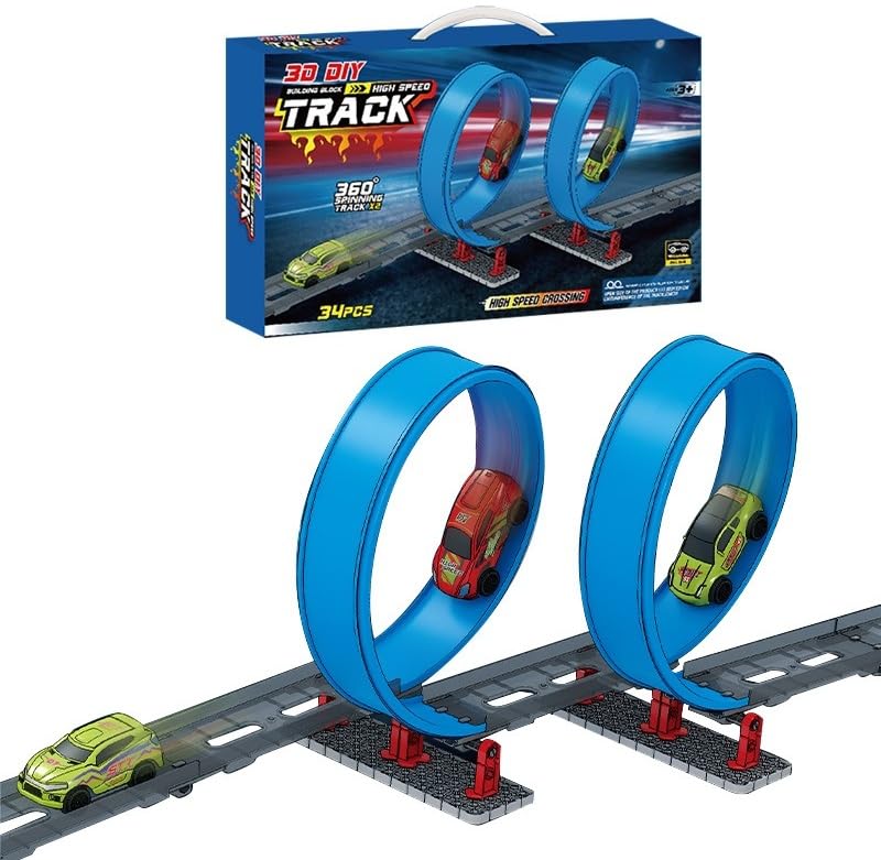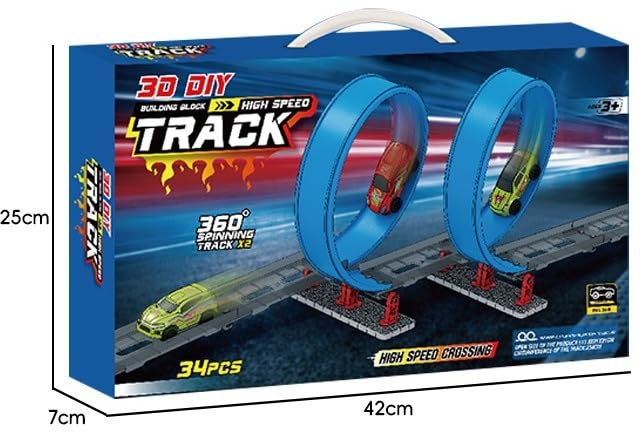 Goyal's 3D DIY High-Speed Track Toy Set for Kids – 34 Pcs Loop Track Racing Game with Pull Back Car, 360° Spin Loops – STEM Educational Car Track Toy