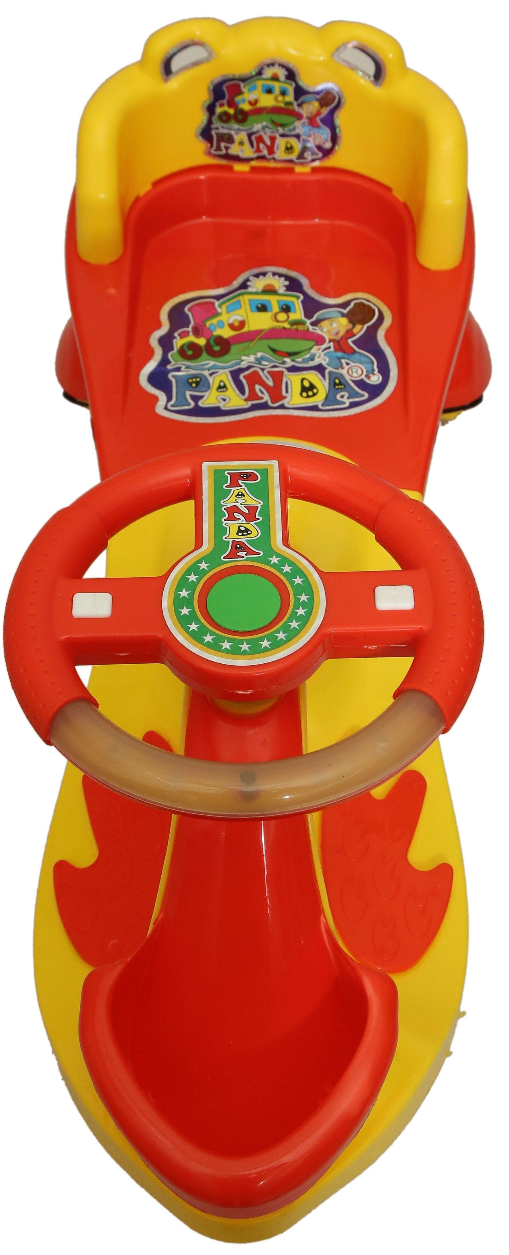 Goyal's Basket & Back Support Multi Designs Musical Free Wheel Swing and Twist Magic Car - Yellow