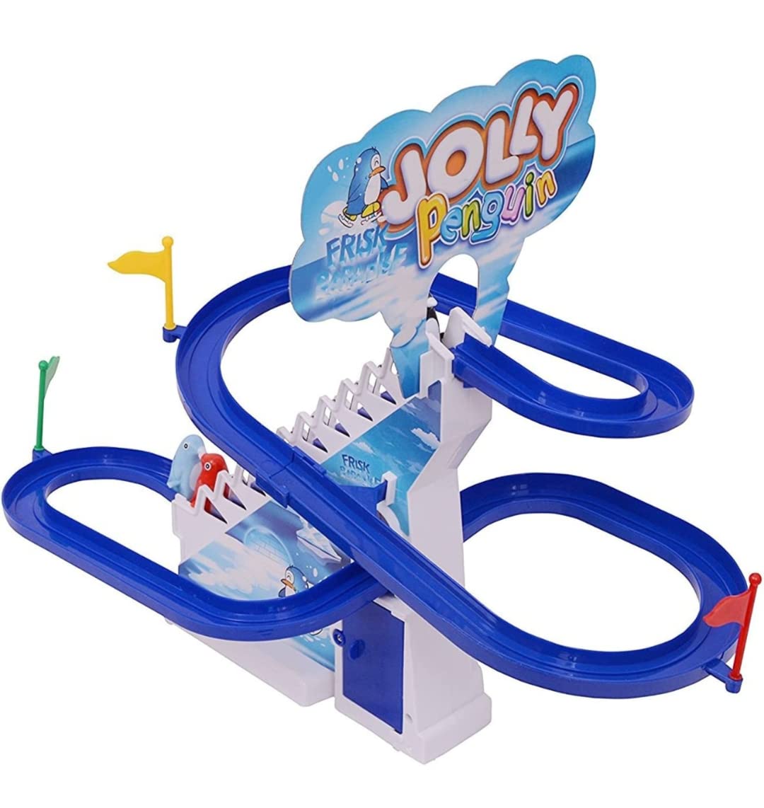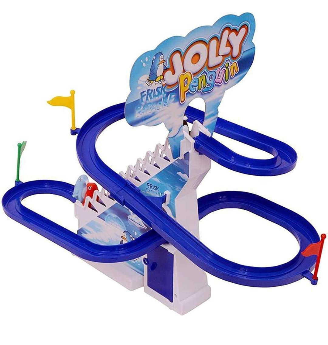 Goyal's Big Size Penguin Slide Toy Set, Funny Automatic Stair-Climbing Cartoon Race Track Set Little Lovely Penguin Slide Toy Escalator Toy with Music
