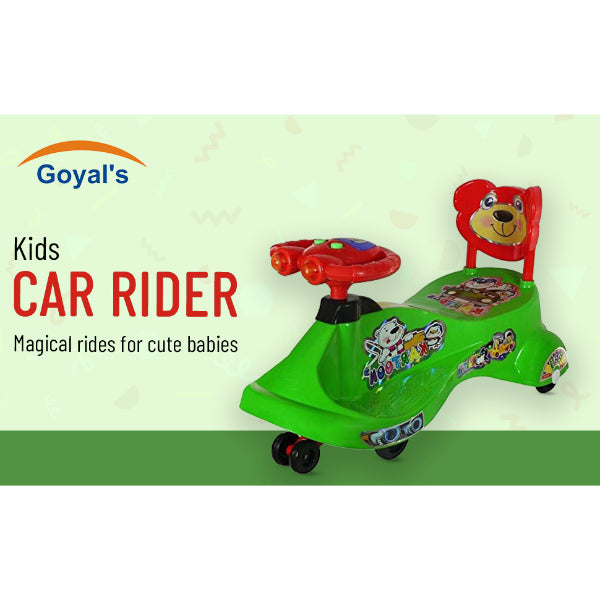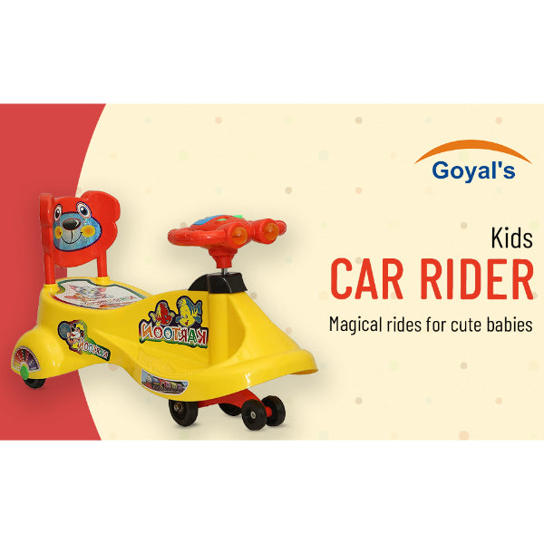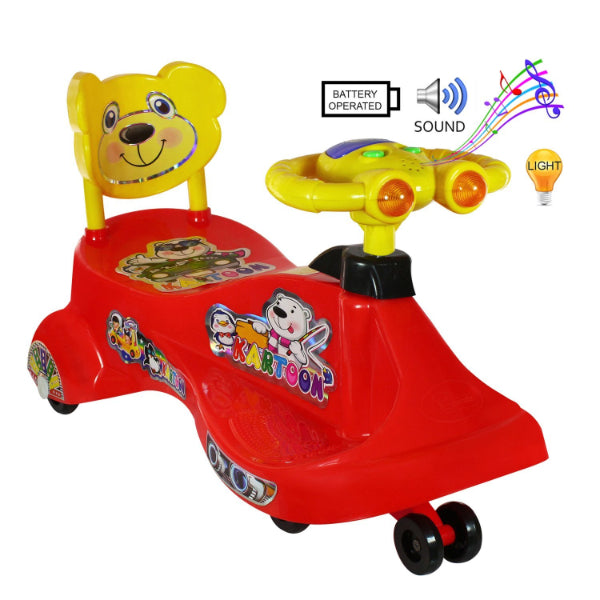 Goyal's Kartoon Face Musical Free Wheel Swing and Twist Magic Car With Back Support